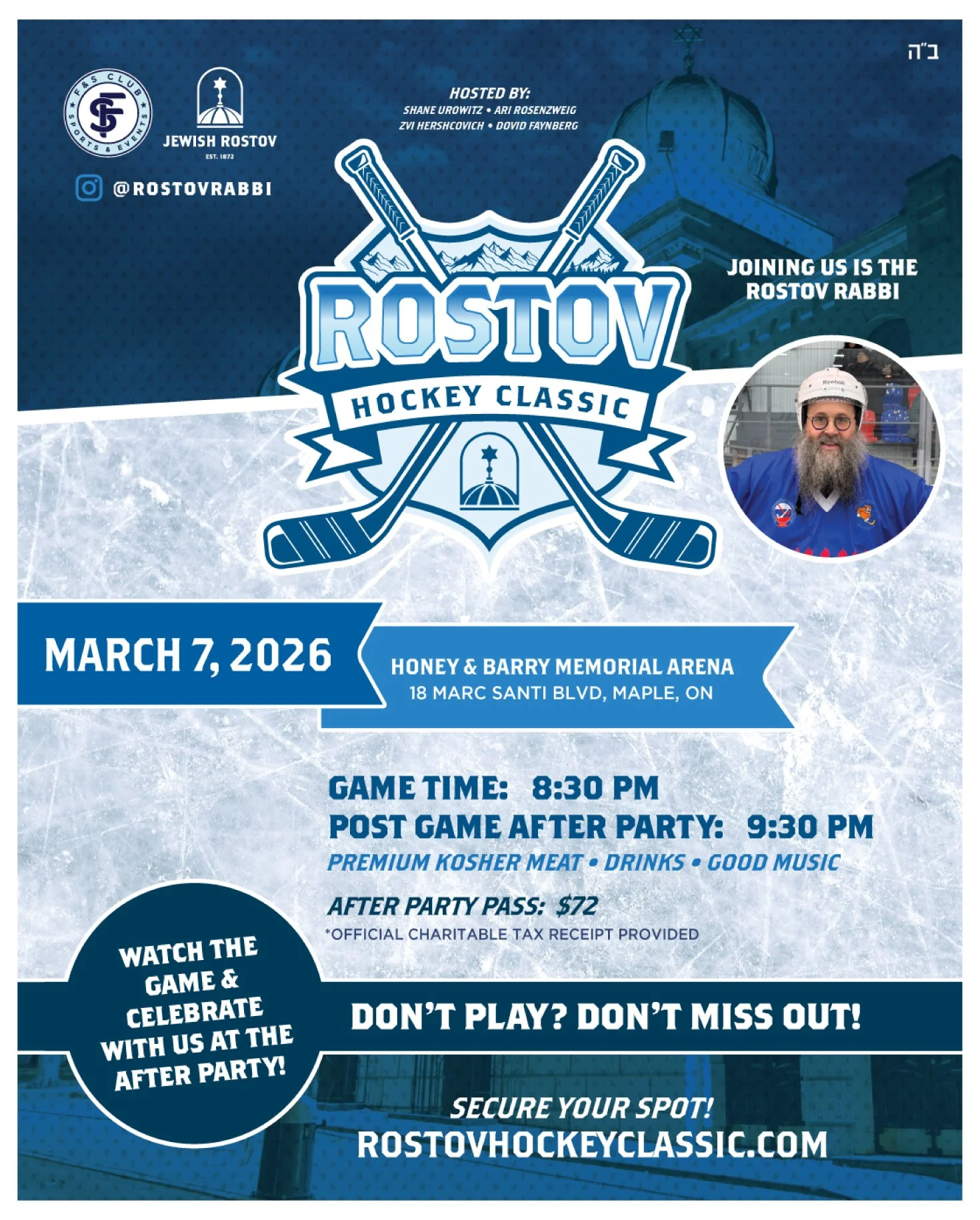 Register now for the First Annual Rostov Hockey Classic — an unforgettable experience and a powerful community fundraiser supporting the Soup Kitchen & Jewish camps in Rostov, and helping provide meals to Holocaust survivors living alone.